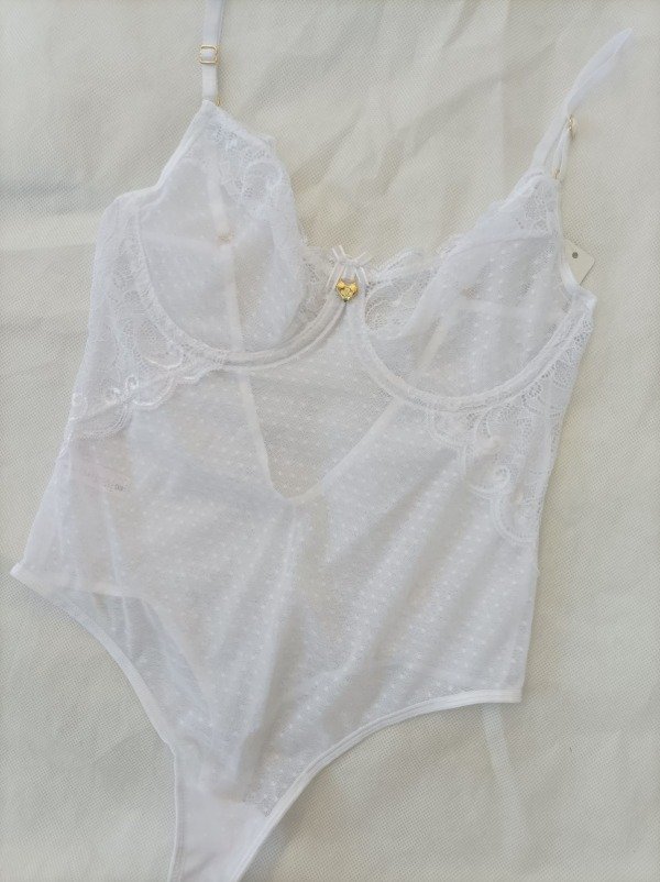 Body de encaje y plumeti con aro y broche en la zona de la entrepierna