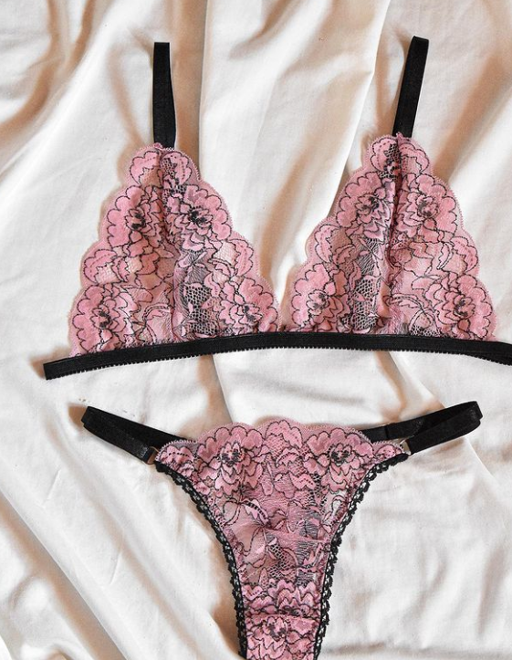 Conjunto con puntilla bicolor y colaless regulable, con refuerzo de algodón en la zona interior.