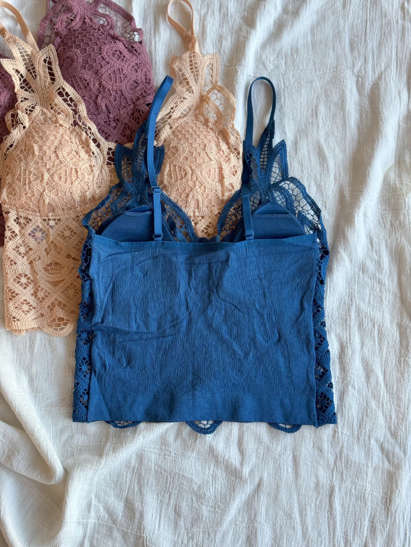 top estilo remerita con rellenos desmontables, frente totalmente de guipiure de calidad premium con breteles regulables y espalda elastizada con textura super delicada.